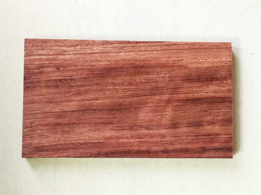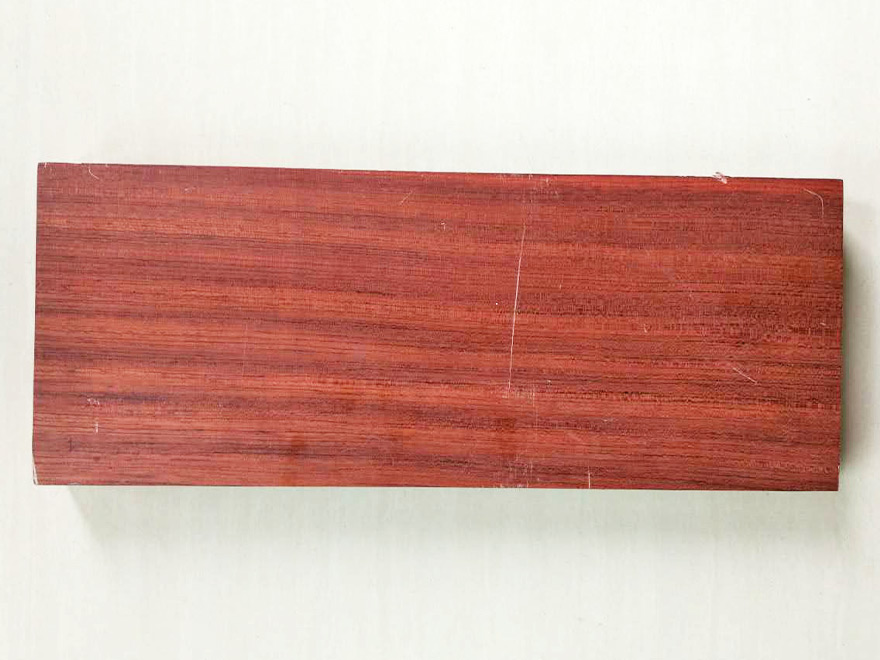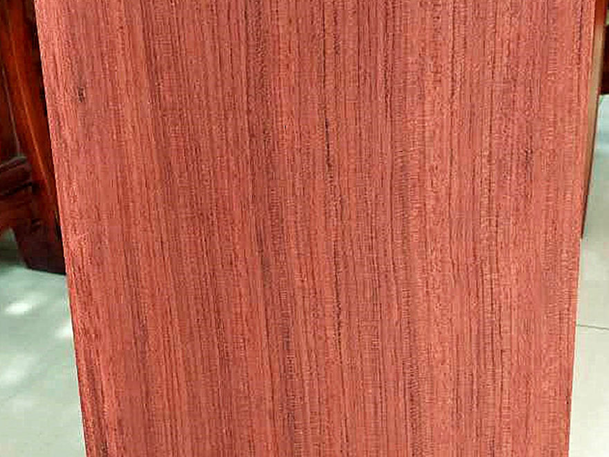 大喬木,高24~30M,直徑1.0M以上;具較大板根。本屬15種,分布于熱帶非洲,其中非洲有11種。只要從喀麥隆、赤道幾內亞、加蓬進口,量較大。宏觀特征:散孔材。心材紅褐色,常具深色條紋,與邊材區(qū)別明顯。邊材奶油色,寬2~8cm。生長輪略明顯。界以輪界薄壁組織外,皮呈圓形小鱗片狀脫落,脫落后殘留卵圓形淺凹坑。樹皮受傷后會流出紅色膠質。管孔稀少,不大。心材紅褐色帶紫色條紋。 木材材性具光澤;略具酸味。紋理直至略交錯;結構細而均勻;質量硬;強度高;干縮大。加工容易,刨切、車旋、握釘、油漆以及膠黏性能均好。耐腐,抗白蟻。干燥較快,無缺陷。氣干密度0.88~1.10g/cm3。 木材用途適用于豪華家具、刨切薄木、細木工、裝飾單板、地板、雕刻、生活器具等。